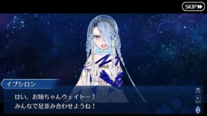 登場順に、テュフォン・エフェメロス、イプシロン、イスカンダル、エルメロイⅡ世、ヘファイスティオン、プトレマイオス、ライネス、司馬懿、孔明、グレイ、アストライア。